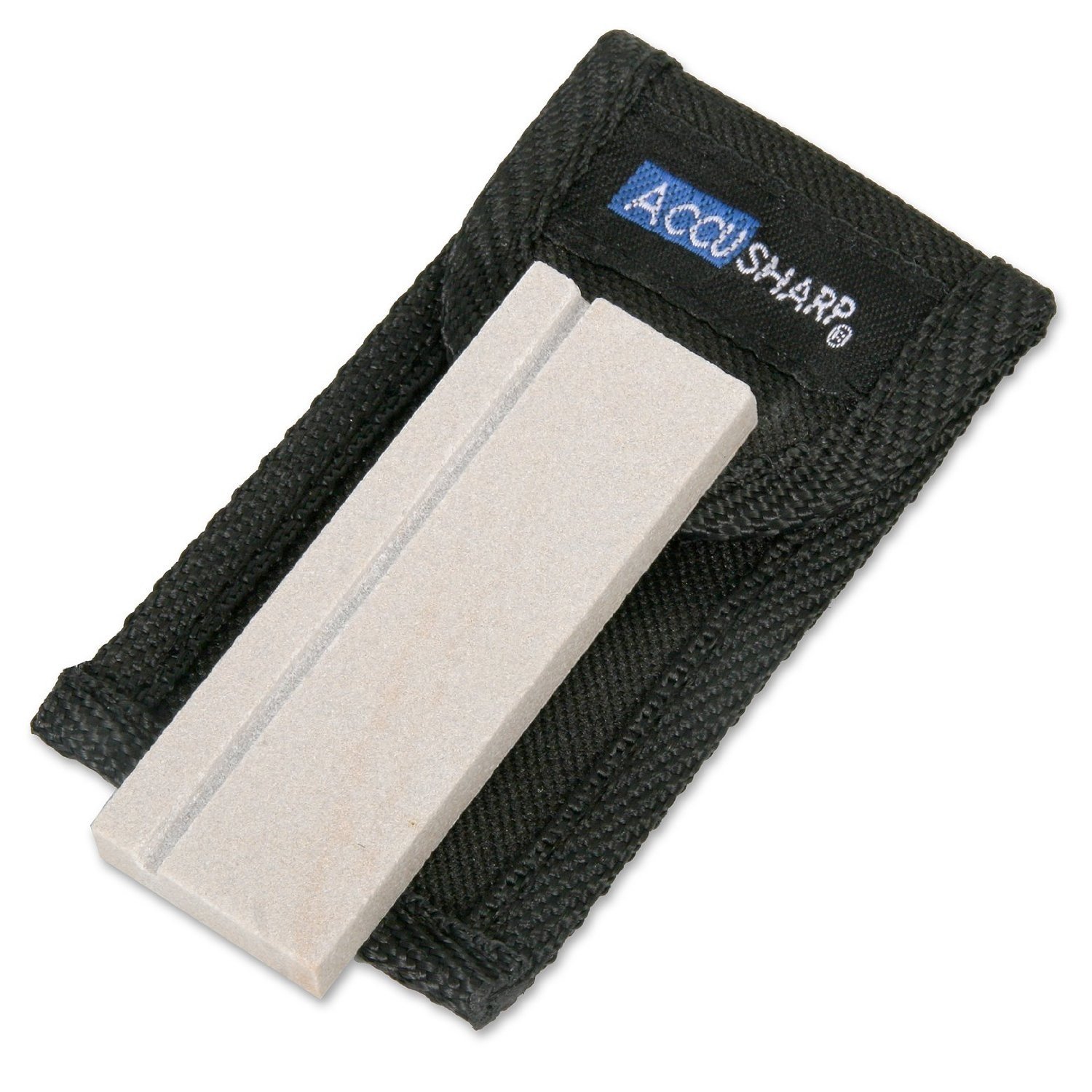 The AccuSharp Natural Arkansas Pocket Stone offers traditional sharpening of all kinds of straight-bladed knives. The aggressive cutting feature can sharpen all types of steel. The Natural Arkansas Pocket Stone also comes equipped with groove to sharpen all varieties of hooks and darts. The Natural Arkansas pocket stone comes complete with a handy AccuSharp carrying pouch with a built-in belt loop for convenience.