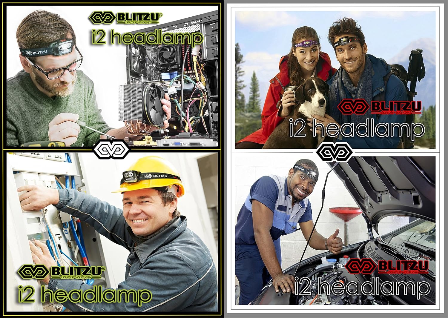 - ✔ PORTABLE & CONVENIENT - Improve your visibility instantly with hands-free bright lighting- No more struggle to hold a flashlight when you need both hands to work or perform any types of tasks. The Blitzu i2 led headlamp is lightweight, modern and stylish. Weighs only 2.2 oz without batteries. It's so light you won't even notice wearing it!