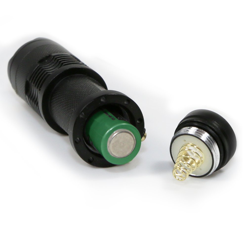 The build quality of these flashlights is great. They are made from Aircraft Aluminum so they are light but very sturdy. The “zoom” lens and the battery end cap are both o-ring sealed to prevent water from entering your flashlight. I wouldn’t call them waterproof but they should hold up just fine in the rain. The pushbutton feels pretty sturdy and has a distinct “click” to it. Be careful with cheap versions of these lights, they usually have a poor quality pushbutton.