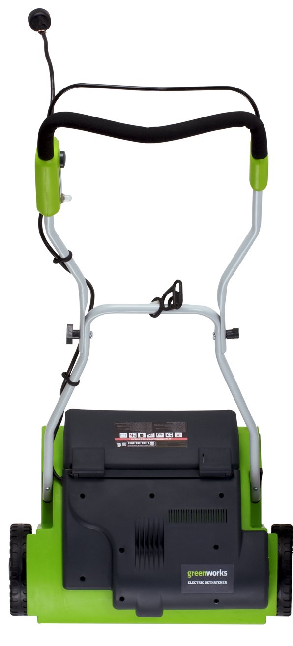 So far, I did the backyard with this device. We lost large sections of the lawn because the grass was suffocated by some kind of vine-like weed. The dead grass and the weeds had to be pulled up so we could reseed in the fall. This dethatcher was everything I wanted it to be. Years ago, we had used a special attachment to a tiller to do the dethatching. It ran on a mixture of gas and oil, took 20 minutes of heavy cord pulling to get it to start, was extremely hard to control, worked better going backwards, made a lot of noise, and smoked like crazy. Eventually the thing wouldn't start at all. In contrast, the Greenworks dethatcher starts in an instant, is easy to push and control, is extremely quiet, and is powerful enough to do a better job dethatching the lawn than the gas and oil device we once had. Of course, the electric cord can be a nuisance. You have to perfect your style in order to avoid accidentally going over it. If this thing was rechargable but still light and powerful, it would be perfect.