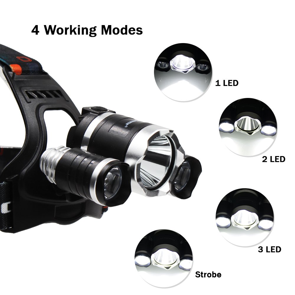 I am extremely happy with this InnoGear 3 Cree LED Headlamp, it comes with a wall charger, a USB charger and 2x 6000mAh battery. It's solid built, comes with some great features, like heatproof and waterproof, it is also 90 degree rotatable, the straps is adjustable to fit different head sizes, This thing is really bright, it has 4 setting, 1 click for the main light in the middle, 2 clicks for the 2 smaller lights on the side, 3 clicks to activate all 3 lights, the 4 clicks for strobe, it will last 4-6 hours continuous use. it can be use indoor for garage work, and outdoors activities like camping, hiking, cycling etc. It fit really comfortable on head, it fits on a regular size biking helmet as well, but I preferred to wear it with a cap to make it look more normal or cool looking. I attached few picture to show how nice it is. I received this product at a discounted rate in exchange for my honest review