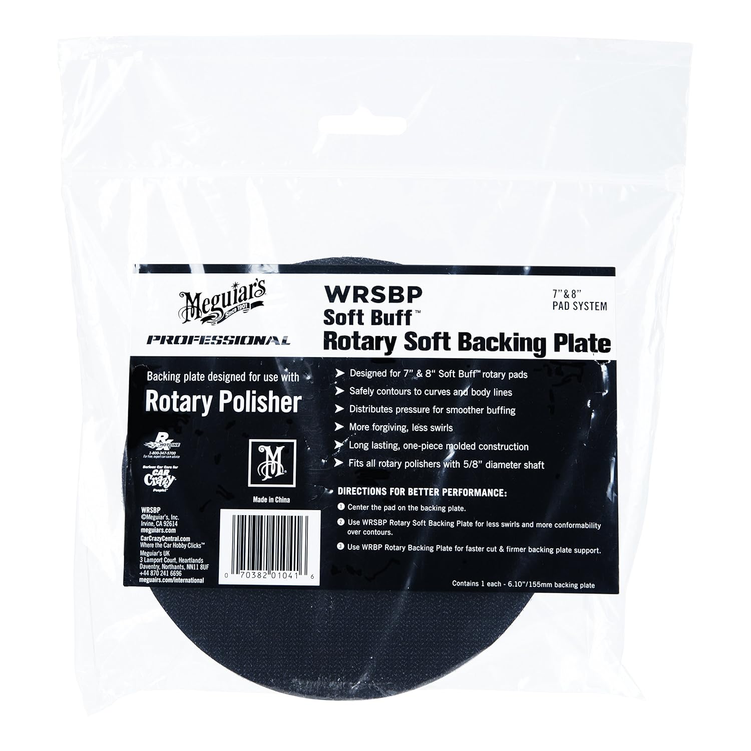 Meguiar's WRSBP Rotary Soft Backing Plate - 155 mm is designed for 7" & 8" Soft Buff rotary pads. Safely contours to curves and body lines. Distributes pressure for smoother buffing resulting in more forgiving and less swirls. Long lasting, one-piece molded construction. Fits all rotary polishers with 5/8" diameter shaft