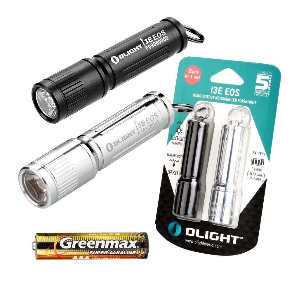 - Olight EDC Keychain,Package include : 1* i3e Silver +1* i3e Black ,2*Pcs AA batteries .