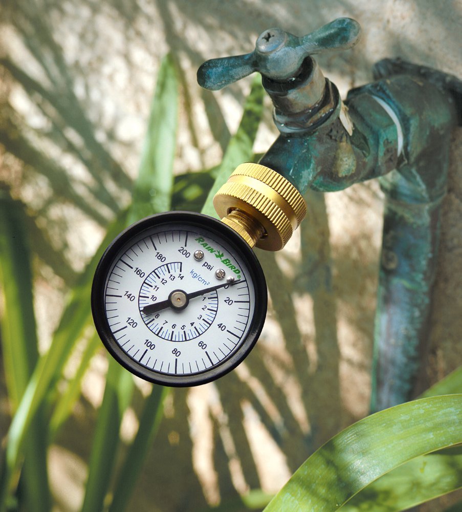 Rain Bird P2A pressure gauge. Easy-to-read guage supplies pressure readings from 0-200 PSI. 3/4” female hose thread adapter quickly attaches to outside faucet. May also be used to replace pressure gauges on all major brands including: Hayward, Pentair, Jandy, Zodiac, Waterway, Jacuzzi, etc. From the Manufacturer: Accurate measurements are critical to an effective irrigation system design. Rain Bird’s P2A Pressure Gauge will help you plan and design an efficient water-saving irrigation system. Use to accurately measure water pressure before design, and during installation. The 3/4” female hose thread quickly attaches to an outside faucet. Clear display provides accurate readings from 0 to 200 PSI. Rain Bird “The Intelligent Use of Water”