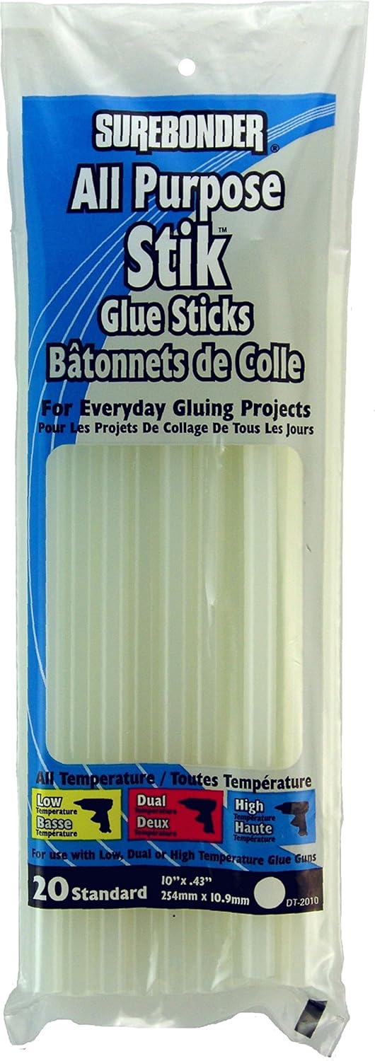 Surebonder DT-2010 Made in the USA All Purpose Stick Glue Sticks-All Temperature-Clear 7/16' D, 10' L Glue Stick-20 Sticks per Bag