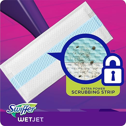 - Swiffer WetJet Extra Power mopping pad's SCRUBBING STRIP Tackles Tough Dirt & Grime