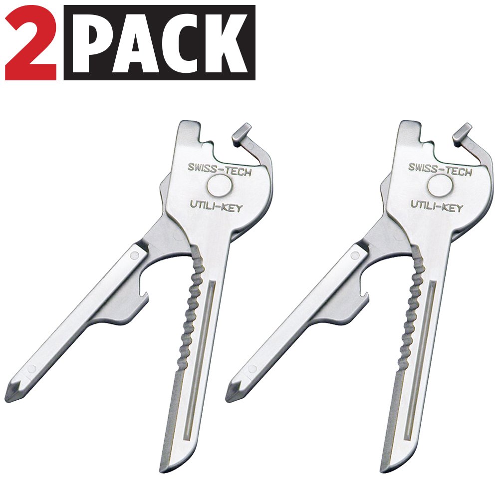 Swiss Tech ST66676M2 Utility Key Multitools (6-in-1) for Keychain for Auto, Camping, Hardware - 2 Pack, Polished Stainless Steel