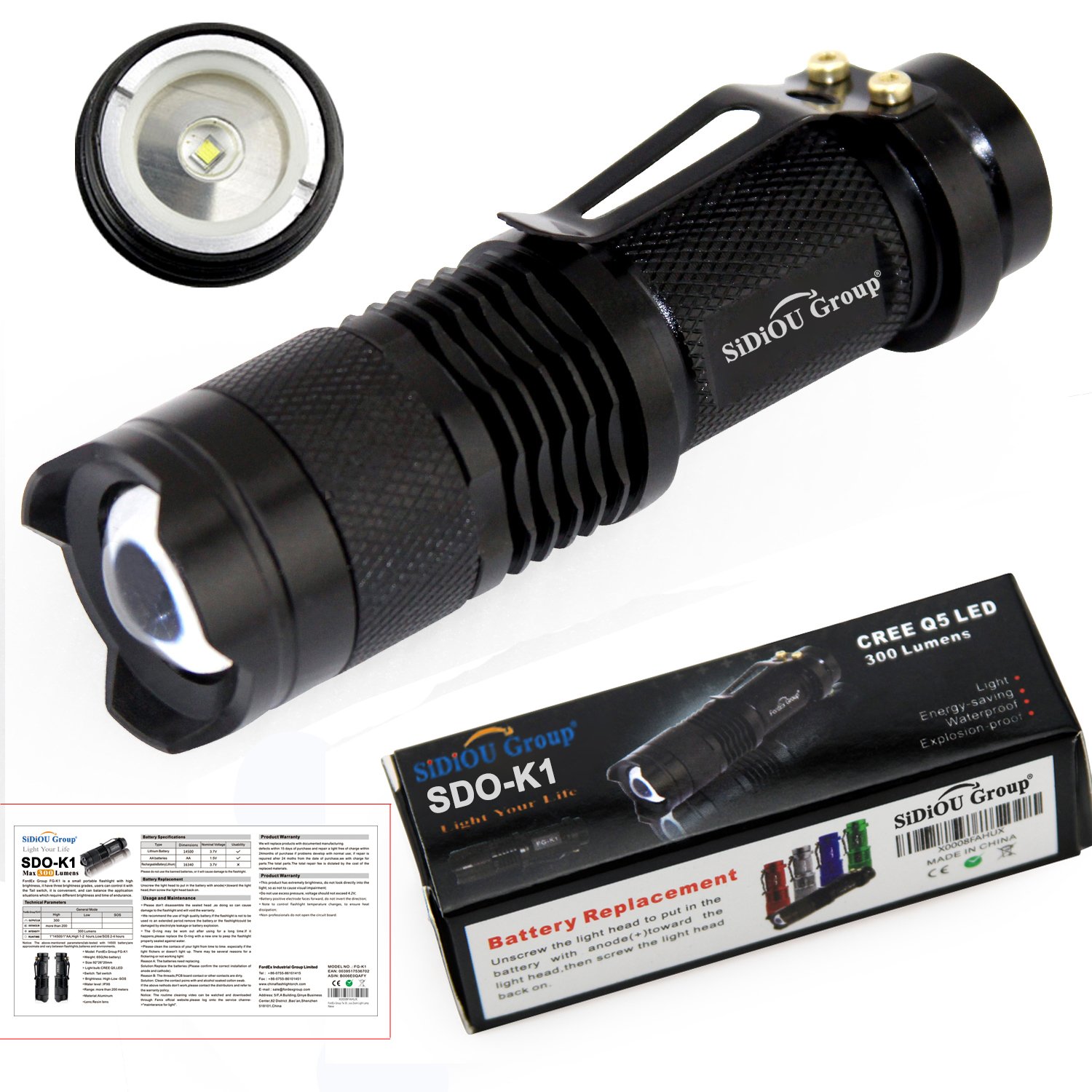 About Ultrafire Ultrafire is a certified brand manufacture that produce Ultrafire series general use flashlight .All products are marked with Ultrafire Features: Super mini size, bright, blinding effect. Skid-proof design & waterproof design. Output bright can come to 300 lumens (MAX). Adjustable focus range for different usage, stretching to adjust its focus. Need to pull the head of the flashlight and it extends to adjust the zoom. Clip for convenience carry. Working voltage is wide and can utilize the batteries in the largest extent. Suitable for hunting, cycling, climbing, camping and outdoor activity etc. LED Specification - LED Type: CREE Q5 LED. - Luminous Flux: 300 Lumen(maximum). - LED Life: 100,000 hours. Switch: Tail-cap press ON/OFF Material and Construction: - With high quality durable Aluminum alloy casing and reflector. - Waterproof design. - With a strong solid constructions. - With body clip, for a easy carry. Support adjust the focus, with zoom in and zoom out. Power Source: 1 x AA Battery (Not included). Dimension: - Length: 93mm. - Diameter: 25.5mm. Net weight: 60g. Clock: Black. Package included: Package content: 1 x UltraFire Mini 300 Lumens CREE Q5 LED Zoomable Flashlight Torch.
