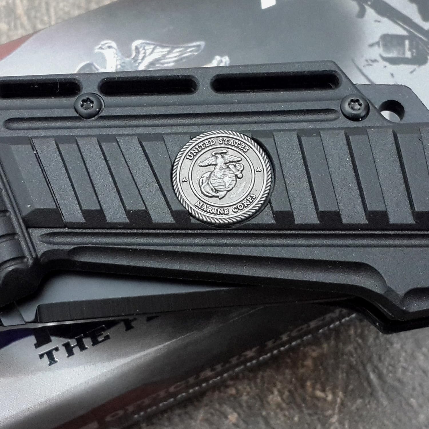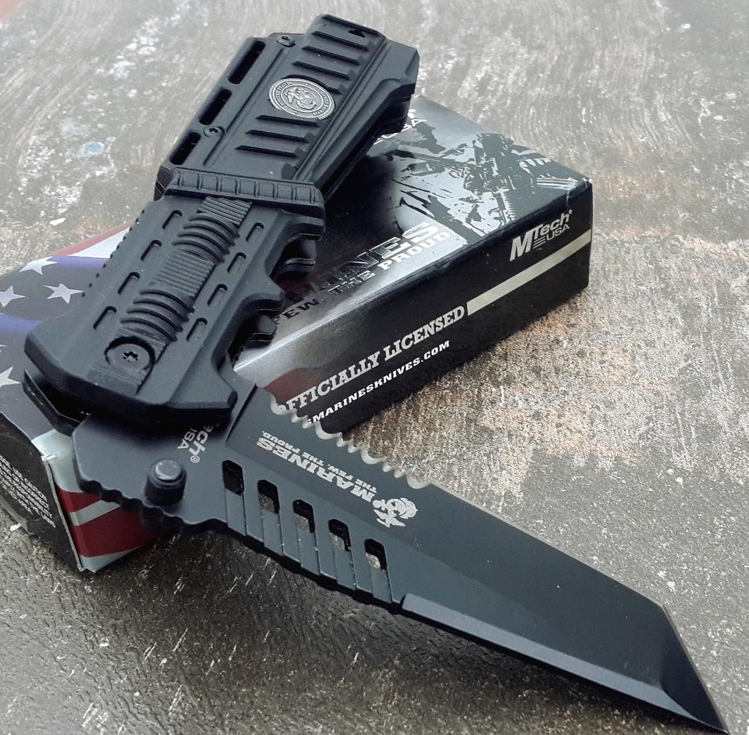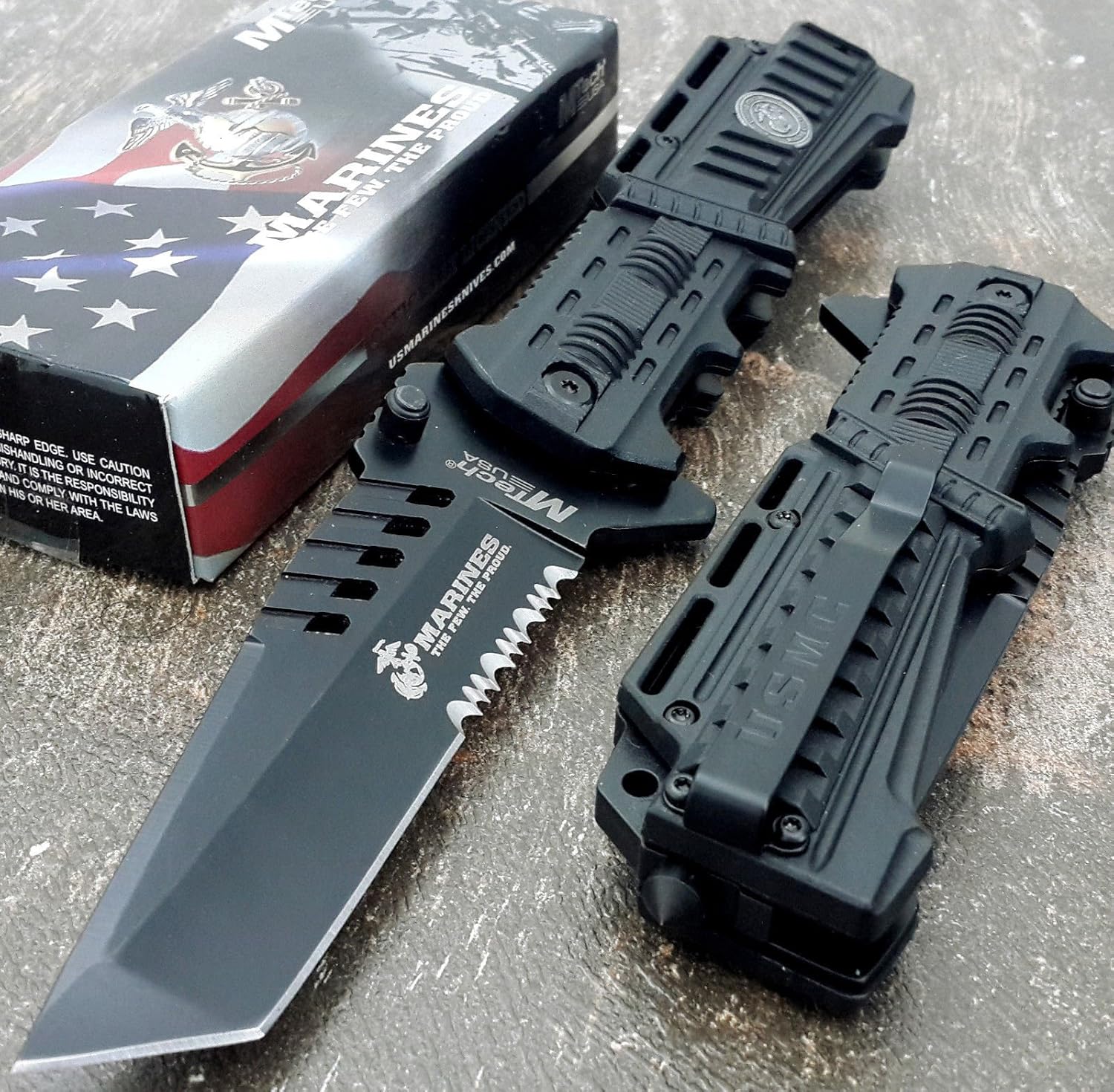 U.S. MARINES Knife Licensed USMC MARINES Assisted Military Knives BLACK Tactical Tanto Knife