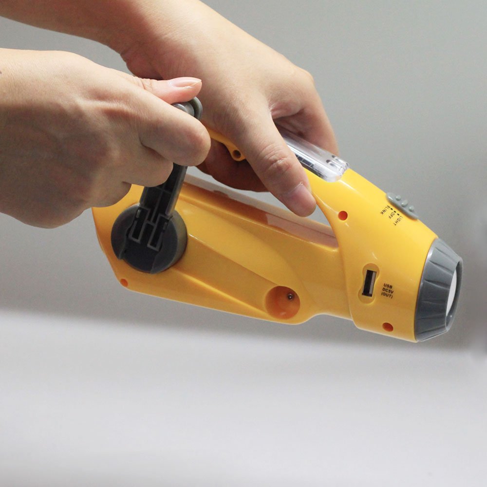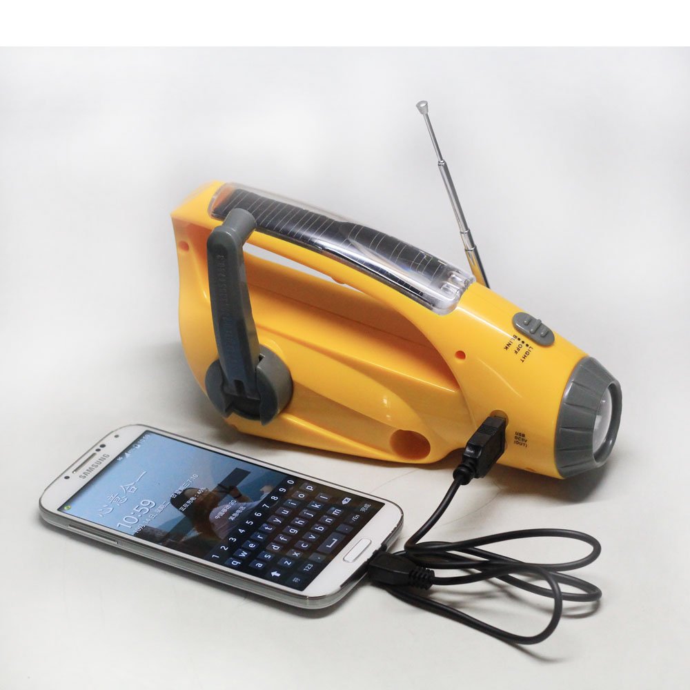 Tip, to charge cell phone with the self cranking device, you need to keep cranking it to provide enough energy. For smart phones, you need to start cranking really fast until the screen shows normal charging, and then slow down to normal cranking speed. Built-in battery: Ni-Cd 300mAh 3.6V. Solar panel: 2350mm 5.5V 40mA. Charging time: 36M(by cranking)/8H(strong sunlight). Using time: lighting(10H)/radio(4H)/siren(1.5H). 1M cranking gives lighting(15M)/radio(4M)/siren(120S). Frequency:FM88-108MHz / AM540-1600KHZ. LED brightness:12000mcd. Output voltage:DC5.1V. Output current:350mA Voltage: DC 3.6V. Rated output power:500mW. Input voltage:DC6V 0.2V. Input current:300mA. Raw Material: ABS+PS.