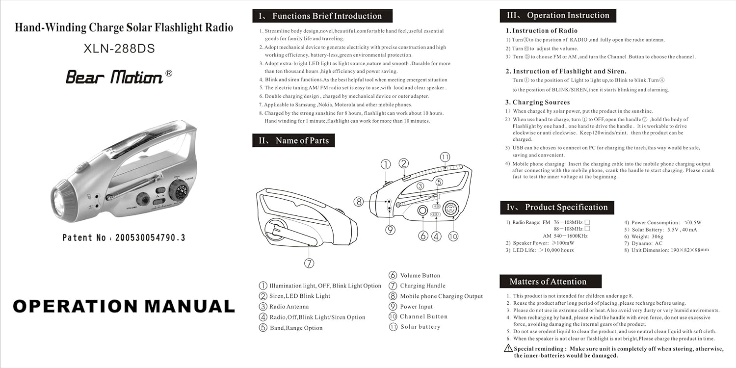 The Bear Motion dynamo is a product that every household should have; not only is it self-powered and doesn't need batteries but it can charge your cell phone, is a flashlight and an AM/FM radio!