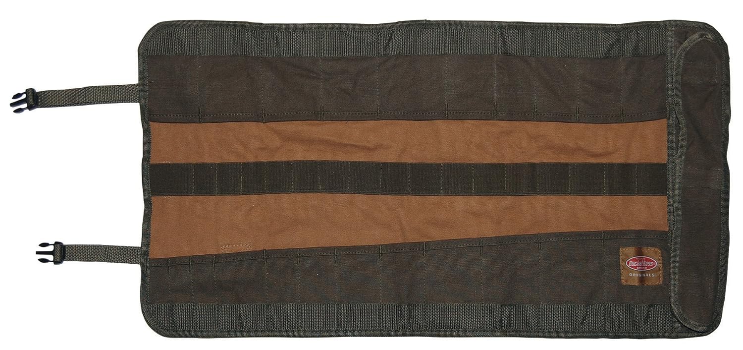 Use the Bucket Boss Tool Roll to hold most types of small hand tools. The 18 oz. Duck wear canvas is used to absorb tool oil and to protect your tools from getting scratched, scrapped or dinged. There are 22 pockets, 3 small Velcro pockets and 17 loops to hold your tools in place. Use the quick release buckles to secure the Tool Roll when it's all rolled up and use the carrying handle to transport your tools.