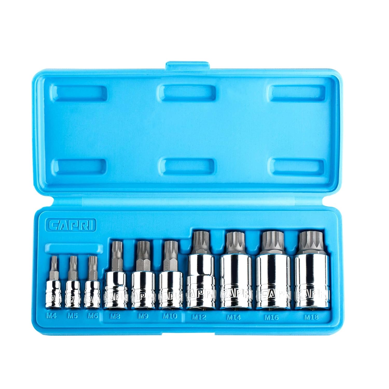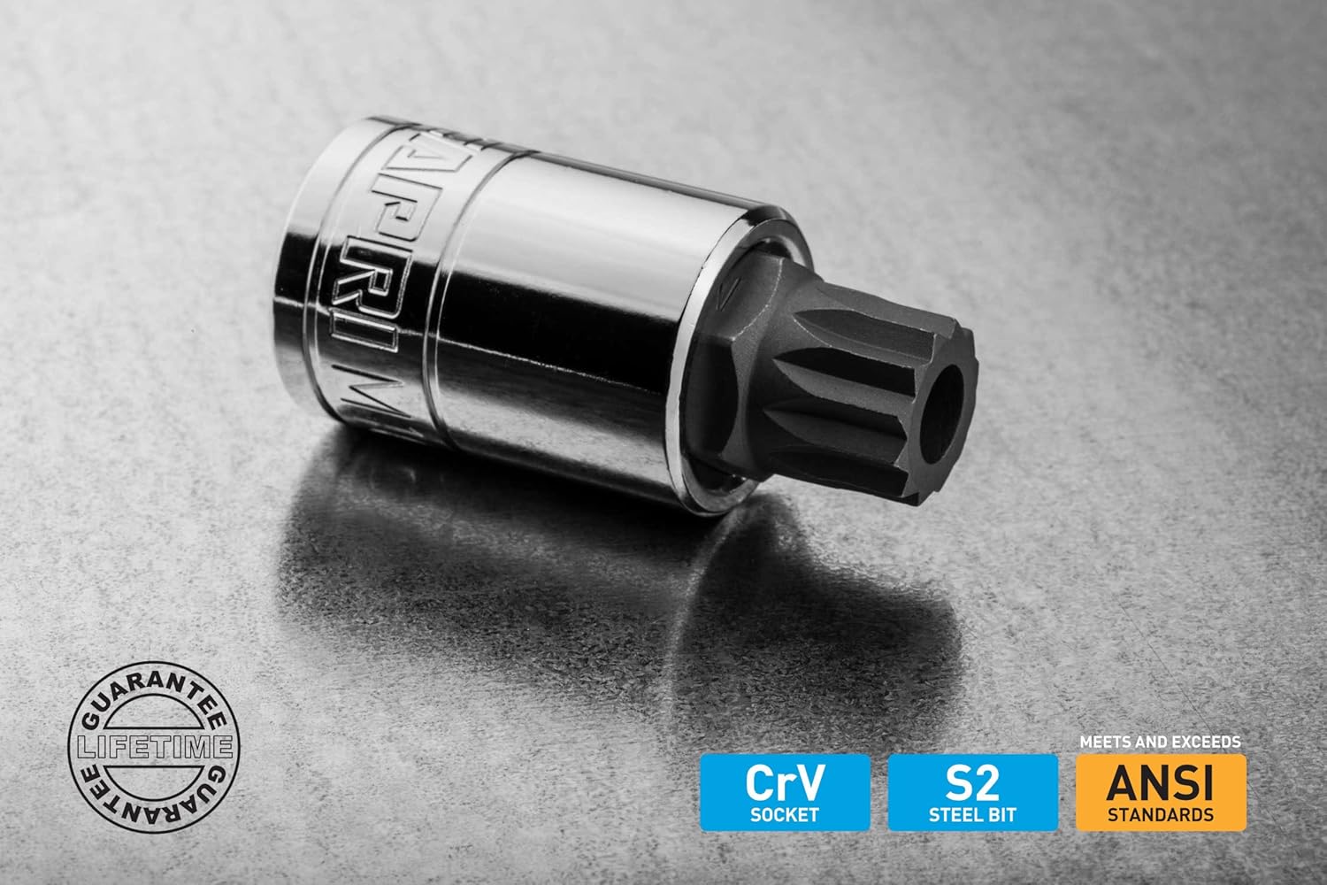 The XZN/Triple Square bits in this set are made from heat-treated S2 steel alloy to withstand long-term use, the sockets are composed of Chrome-Vanadium to provide optimal strength and durability. The pieces also have a chrome plating to prevent rusting and corrosion. This set comes with a convenient blow-molded storage box for portability and protection. These are perfect for use with breaker bars, torque wrenches and ratchets (not for use with impact tools). They are compatible with most European vehicles. This set meets and exceeds ANSI standards and comes with a lifetime replacement guarantee.