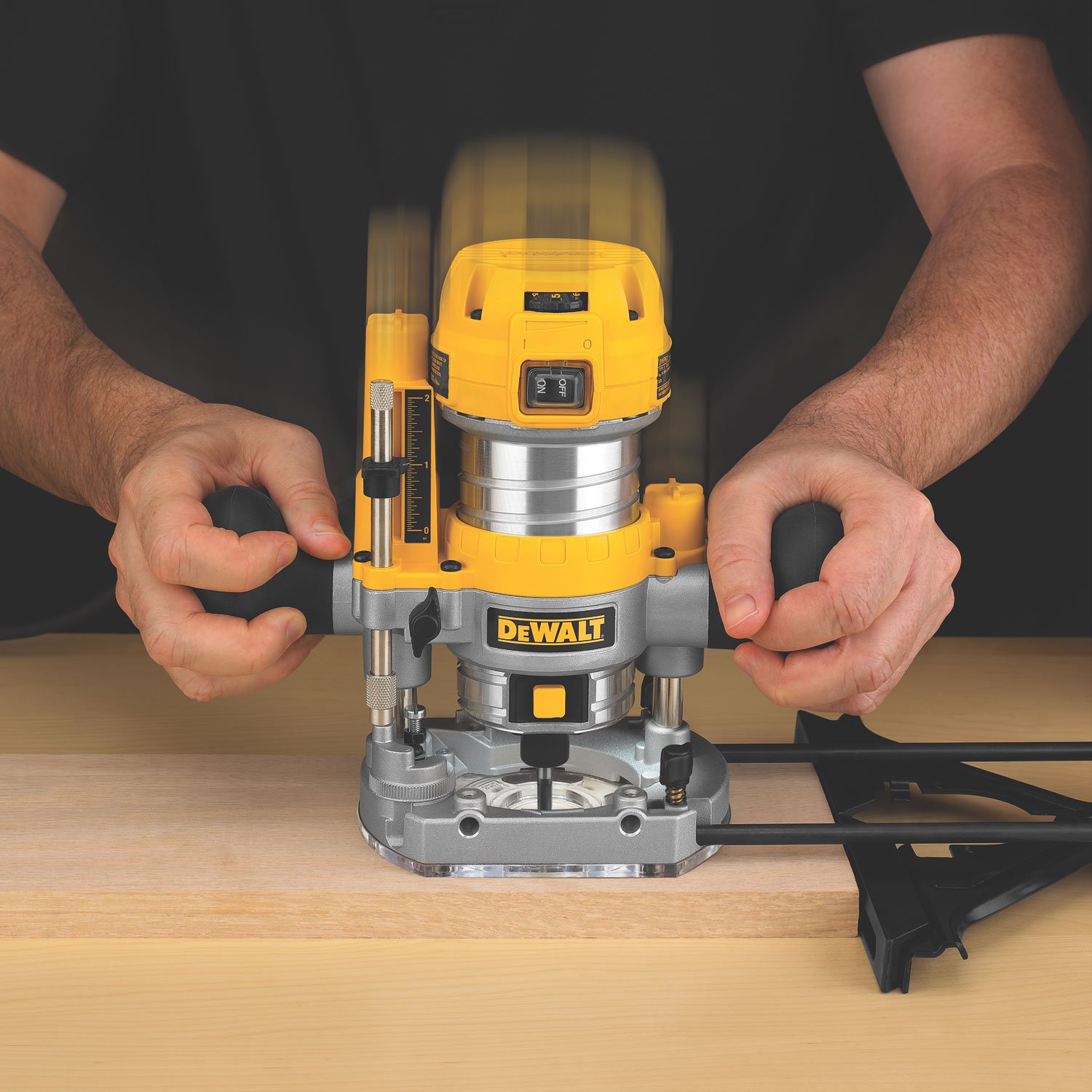 The plunge base features a clear and precise depth scale and marker, a release-to-lock lever to maintain the designated depth setting, and rubber handles for a non-slip grip. It delivers excellent user control via its smooth and light depth stroke, and the five-step adjustable turret stop enables stepped plunge cuts for accuracy and consistency.