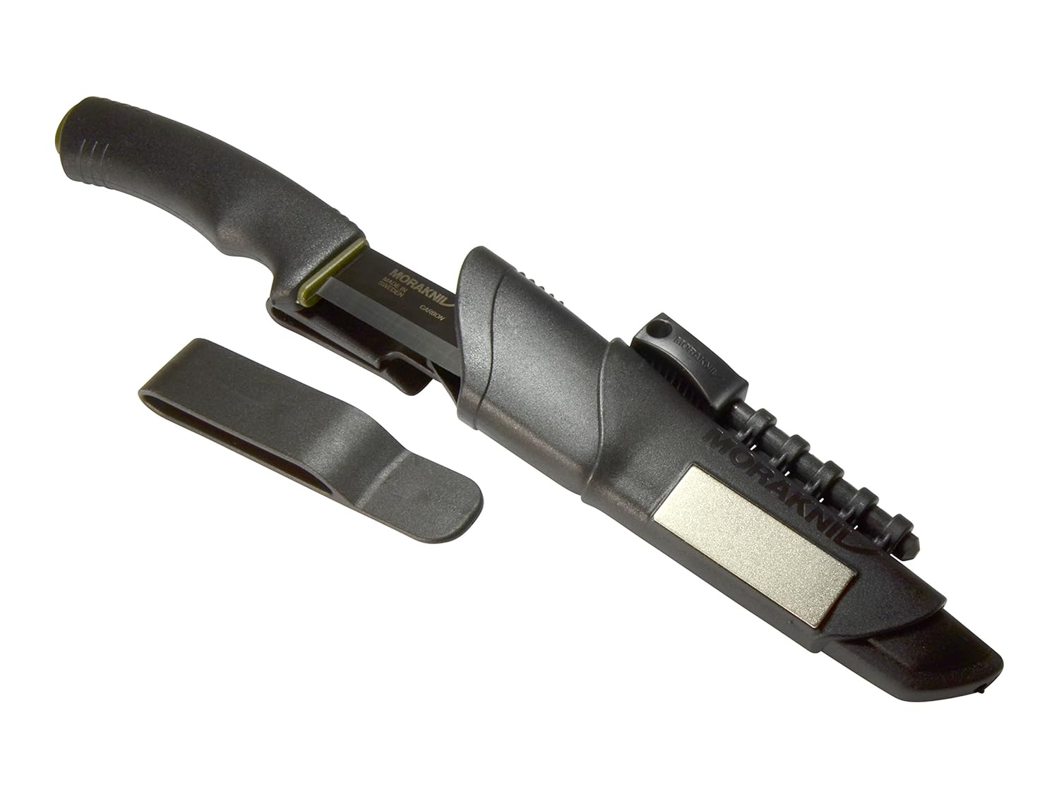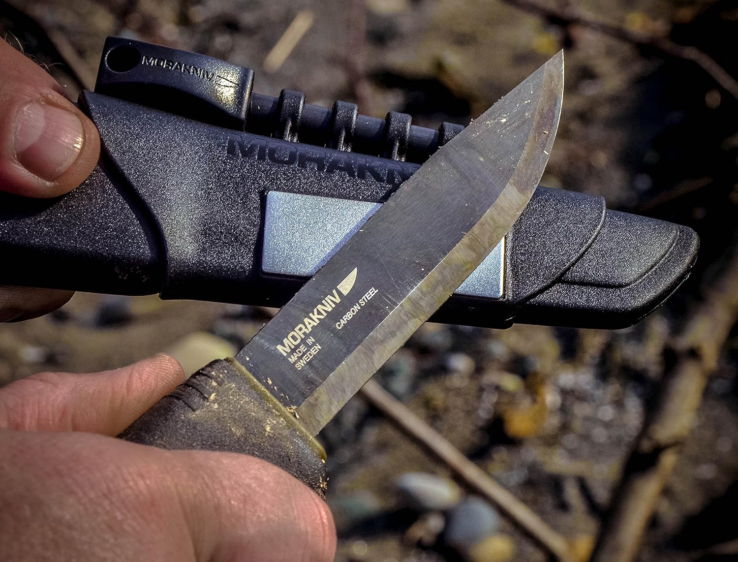 I own several Mora knives. They are superb values and work very well for the money. This is the TOUGHEST Mora yet. It has a relatively thick spine (thickest Mora spine), it throws excellent sparks with little effort thanks to the carbon steel. The handle ergos are superb and comfortable. The tips is strong (strongest Mora tip yet), it's sharp out of the box (though you can make it keener) and it's HIGHLY durable. I spent three days with this knife collecting pine resign for camp candles, batoning fire wood up to 3.5" thick and 4 feet long - yes 4 feet! (I found a good, dry piece of maple and wanted to see how it would do, it split it with little trouble.) I started fires, made feathersticks, opened packages, cleaned under my nails, notched, sharpened wood, made tent stakes, cut paracord, you name it!