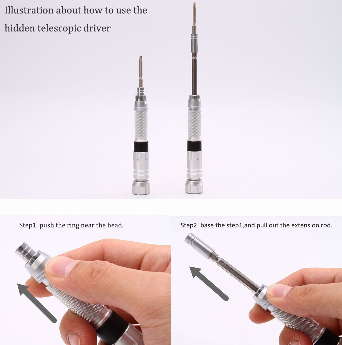 - 22 magnetic tips includes Philips,security Torx,Slotted,Hex,Pentalobe,Torx,Triangle,Y tri-wing,SP2.