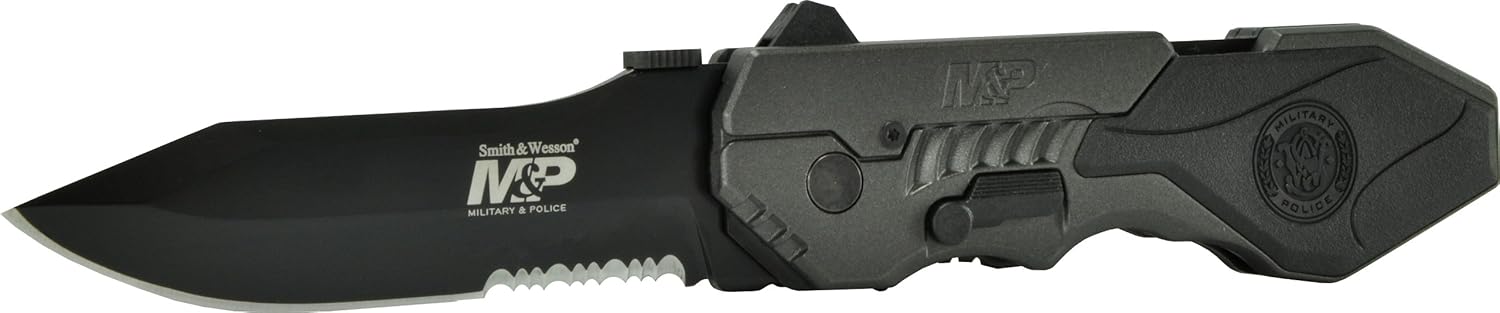 Smith & Wesson SWMP4LS M&P Linerlock Knife with 2nd Generation MAGIC Assisted Open and 40% Serrated Drop Point Blade