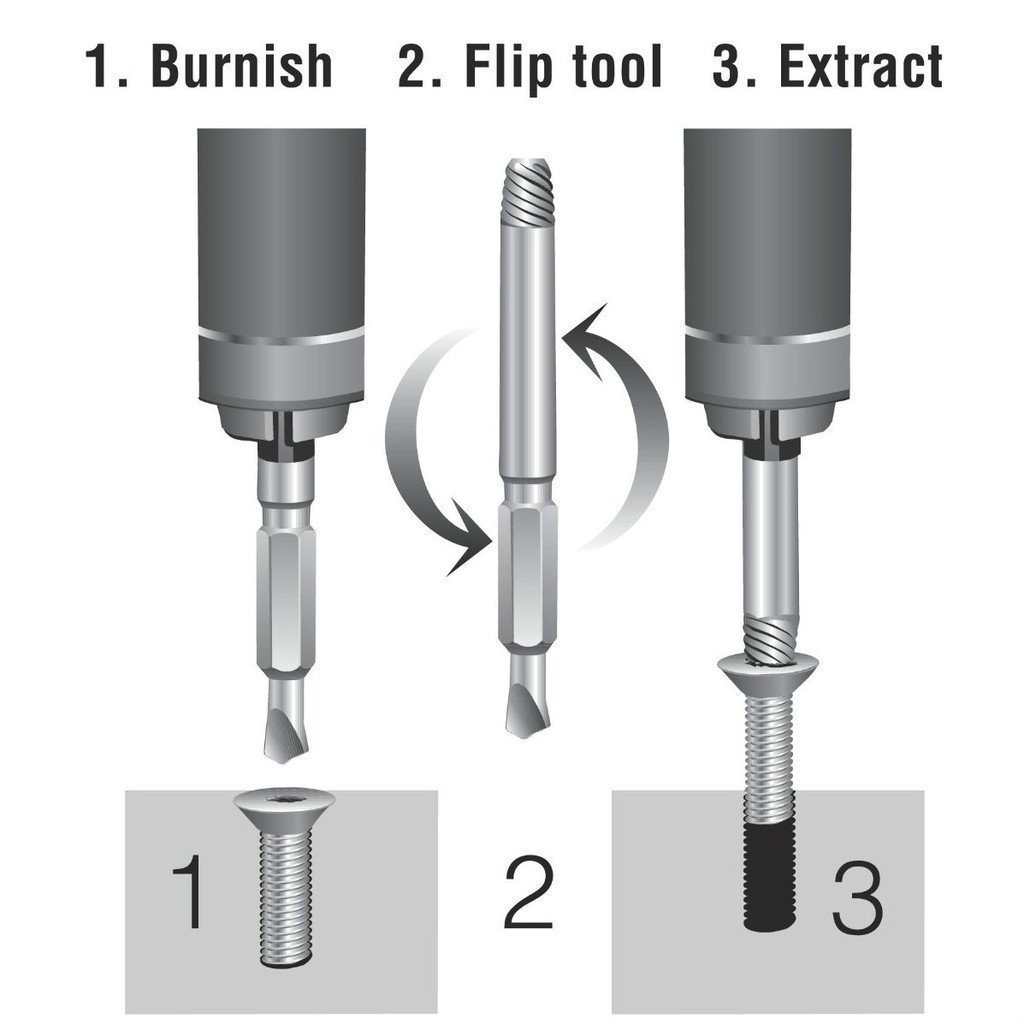 - Damaged Screw Remover and Extractor Set Made of High Strength Steel for superior durability and long life of the cutting and gripping edges