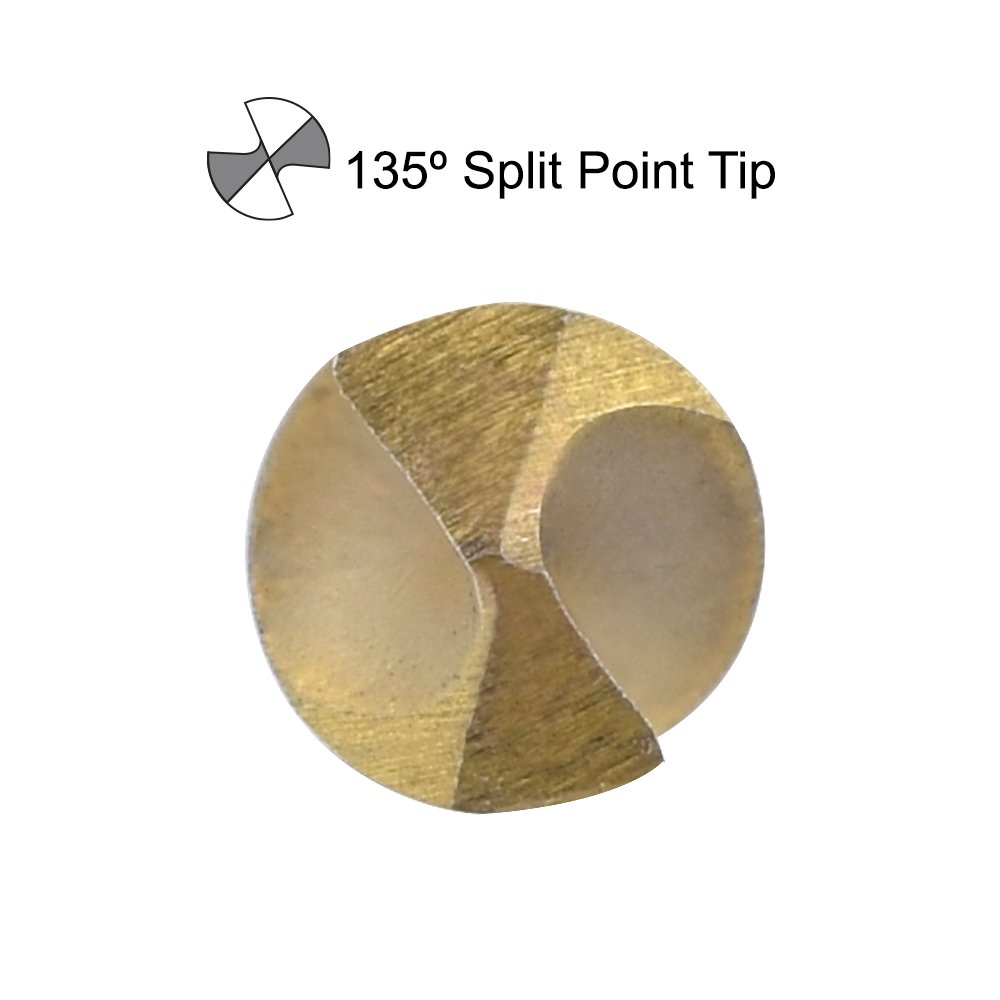 - 135° SPLIT POINT TIP and TWIST DESIGN: increases cutting speed with self-centering and prevents walking, clears chips and particles faster